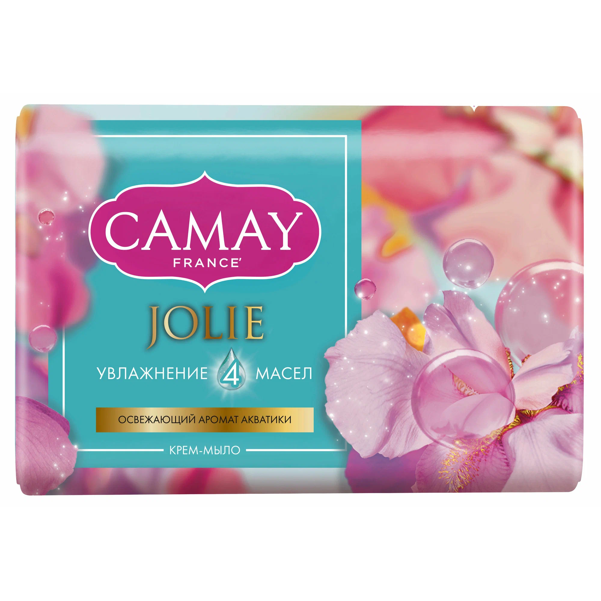 Твердое крем-мыло Camay Увлажнение 4 масел Jolie с ароматом акватики содержит масла пальмарозы, мяты, лотоса и миндаля, обеспечивающие мягкий уход и бережную заботу о коже любого типа.