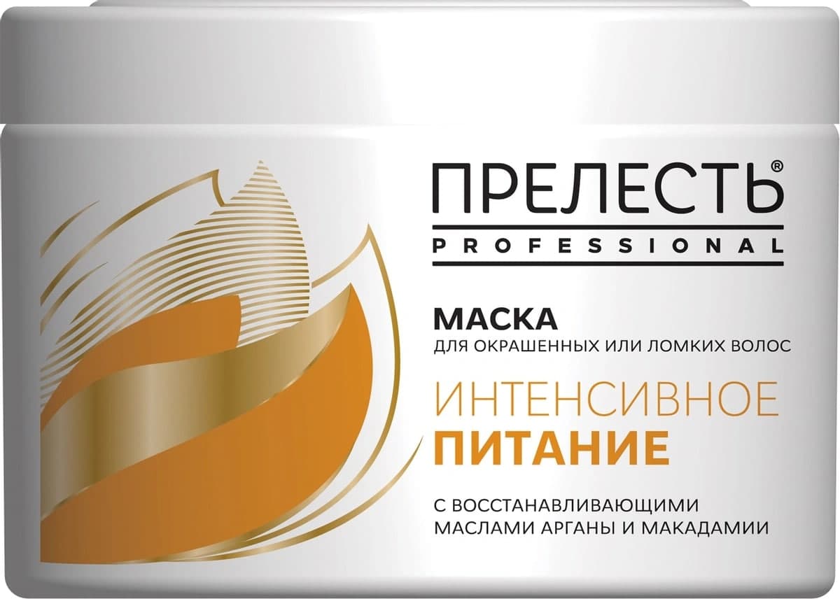 Маска для волос профессиональная из серии "Интенсивное питание" включает в себя комплекс, обогащенный натуральными маслами арганы и макадамии, провитамином B5 и витамином B3.